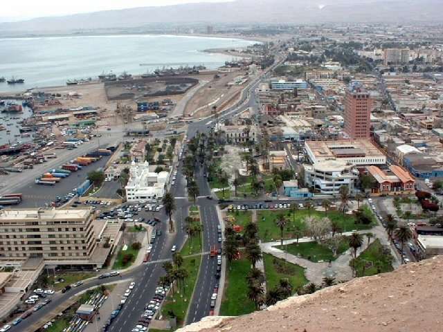 Desde la cima del morro se obtiene esta espectacular vista del puerto de Arica...