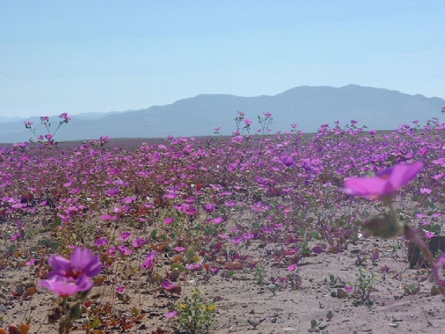 Cada ciertos años, caen algunas gotas de lluvia en el desierto y se produce el milagro... semillas enterradas por años en la arena del desierto, vuelven a la vida, floreciendo en tan inhóspito lugar.