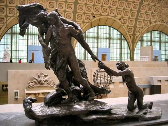 Bronce fundido en tres partes, entre los años 1895 y 1903. Mide 1,14 x 1,63 x 0,72 metros. Este grupo escultórico, realizado en el momento de la ruptura de Camille con Rodin, evoca la indecisión del escultor entre su ex amante, Rose Beuret, que terminaría por imponerse, y Camille.