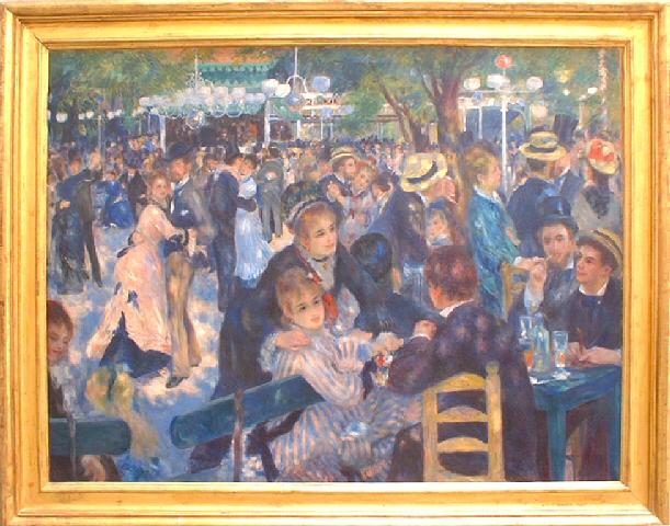 Aunque Renoir decidió representar a algunos de sus amigos, se esforzó ante todo por reflejar la atmósfera vehemente y alegre de este popular establecimiento de Montmartre.